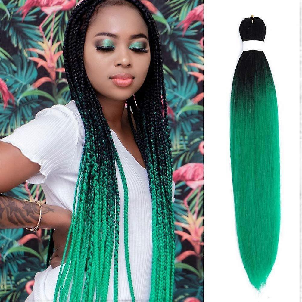 Ombre Green Pre Stretched Braiding Hair 6 Packs Soft Yaki Texture Hot Water Set Synthetic Extensions