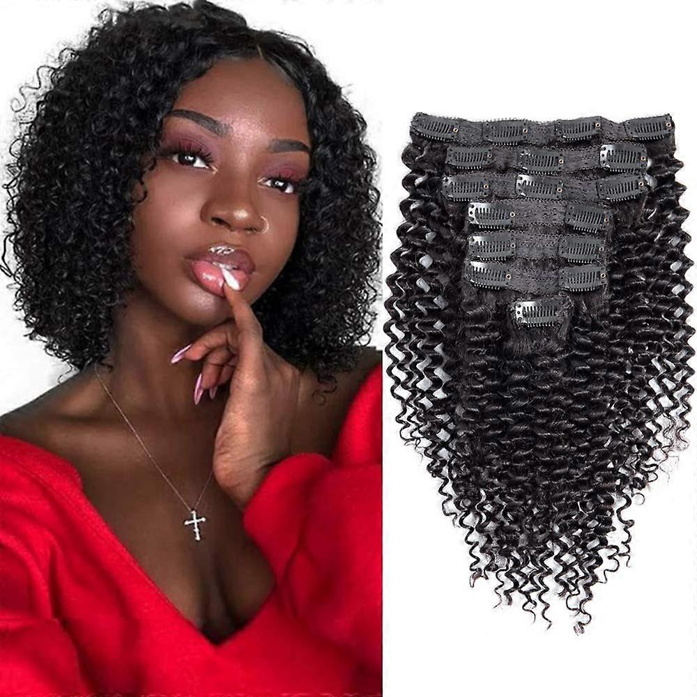 Kinky Curly Clip In Hair Extensions Brazilian Remy Human Hair for Black Women 3C 4A Double Weft 10'