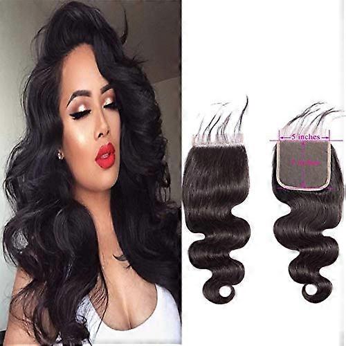 Brazilian Lace Closure 5x5 Human Hair Middle Part with Baby Hair Natural Hairline Blend 12 Inch Color 1B