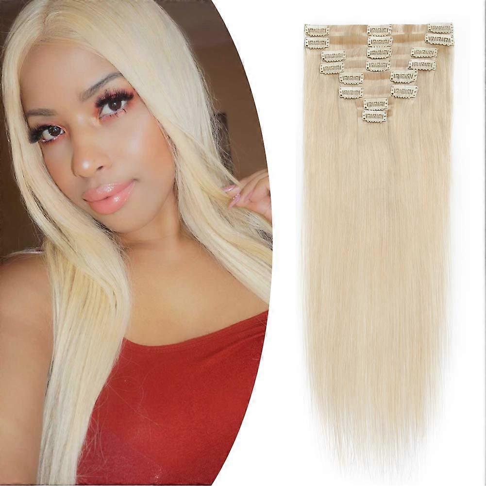 22 Inch Platinum Blonde Human Hair Clip In Extensions, Remy Straight Full Head 8pcs 18 Clips