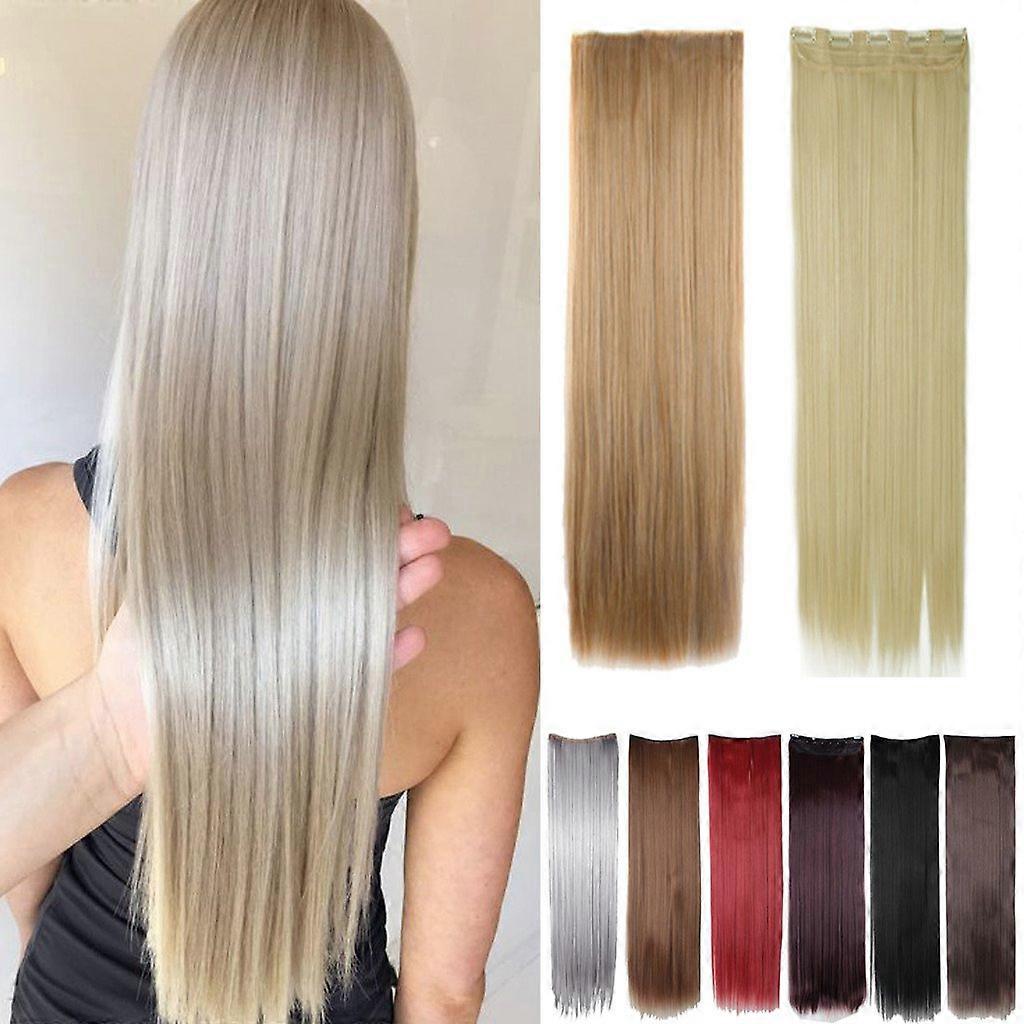 30 Inch Dark Brown Straight Clip In Synthetic Hair Extensions with 5 Clips for Full Head Volume
