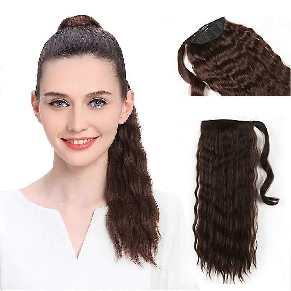 100 percent human hair clip in wrap ponytail This 18 inch, 120 gram clip in ponytail in color 8# Chestnut Brown adds instant length and volume with a natural finish. The wavy curly texture blends with your hair for a seamless look and is designed to hold all day without readjustment. Key benefits Instant length and volume: Transform a short ponytail into a long, full style in seconds. Secure, easy application: A small clip anchors the piece to your base ponytail. Wrap the long hair strip around your ponytail and fasten with the included clasp and bobby pin for a reliable hold. Natural appearance: Made from 100 percent human hair for realistic movement and shine. Multiple color undertones make blending with your own hair easy. Versatile styling: Can be curled, straightened, tonged, washed and dyed to match your preferred look. Durable and low maintenance: Tangle with no mixed fibers, no shedding when cared for properly. Average product life 6 to 18 months, depending on care and use. Product details Color: 8# Chestnut Brown Size: 18 inch length, 120 gram weight Hair type: 100 percent human hair Structure: Wavy Curly Type of extension: Clip in long ponytail and braid wrap Number of wefts: 1 Package includes: 1 ponytail hair extension, 1 bobby pin How it works The section contains a small clip that secures into your short ponytail. Pull the extension around your natural ponytail and wrap the attached strip of hair to cover the base. Secure with the clasp and bobby pin for a neat finish that stays in place all day. Practical use scenarios Everyday styling: Create a polished, full ponytail for work or casual outings in under a minute. Special occasions: Add dramatic length and volume for weddings, parties, or photos without permanent commitment. Braids and updos: Use the wrap ponytail to build thicker braids or fuller updos for events or stage looks. Care tips Wash gently with mild shampoo and conditioner when needed. Style with heat tools as you would natural hair. Test on a small section first if you plan to dye. Store on a hook or in a protective bag to preserve shape and reduce tangling. This clip in wrap ponytail offers a simple, reliable way to change your look quickly while keeping styling options open and maintaining a natural finish.