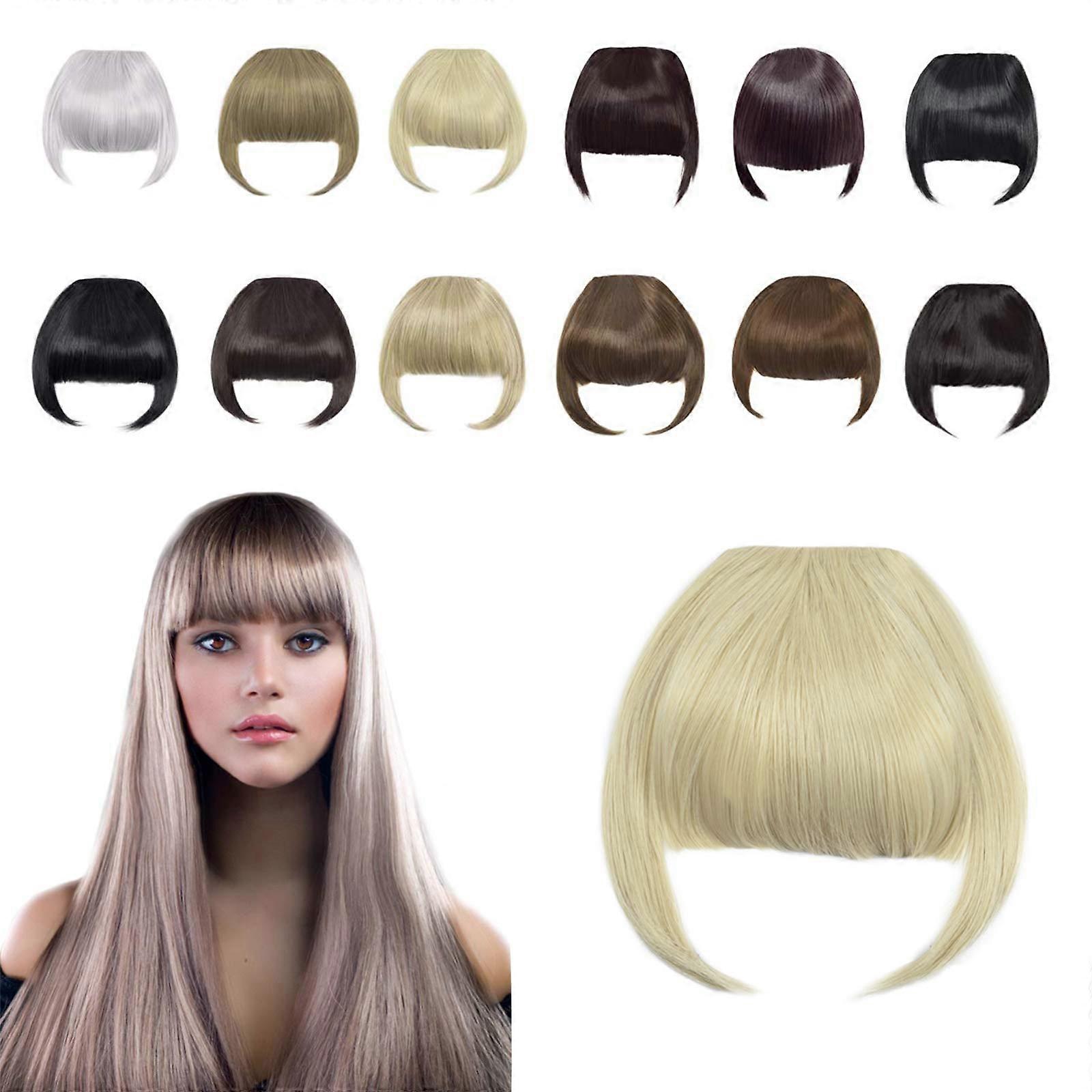 Clipin Flat Bangs with Temples Soft, Natural, Ready to Wear Key features Style: Flat bangs with attached temple pieces for natural face framing Material: Heat resistant fiber for gentle styling when needed Weight: 30 g / 1.05 oz, lightweight and comfortable for allday wear Texture: Silky straight for a smooth, natural finish Attachment: Internal BB clip secures the piece to your hair for a discreet hold Why you need this Instant style change without cutting: Get a polished fringe instantly and revert to your original hair whenever you want Natural look and feel: Silky straight fibers and temple pieces blend with your hair to create a realistic appearance Lightweight and comfortable: At 30 g, the bangs are easy to wear all day without pulling or discomfort Versatile styling: Use the internal clip to secure the bangs for everyday wear, events, or photoready looks How to wear 1. Comb your hair from the center toward the sides to create a smooth base. 2. Place a small section of your hair over the area where the fringe will sit. 3. Open the internal BB clip and attach the bangs to your hair close to the roots. 4. Release the section of hair and let it fall over the clip to blend. 5. Comb through gently to finish the look. Care instructions 1. Rinse the bangs gently with warm water. Apply a small amount of shampoo and lather until the hair looks clean. 2. Apply conditioner and leave for up to 5 minutes, then rinse thoroughly with lukewarm water. 3. Blot excess water with a towel and allow to air dry. Do not blowdry. 4. Detangle gently using a widetooth comb or your fingers to avoid tugging. 5. When not in use, store the bangs in their original packaging and shake lightly to restore shape. Color selection tips View colors outdoors in natural daylight for the most accurate match. If unsure, compare the product color to a clear, welllit photo of your hair taken outdoors before choosing. Additional notes Minimal shedding can occur with synthetic hair and is normal. Synthetic fiber cannot be dyed; dyeing may damage the piece. Practical uses Everyday styling: Add a soft fringe without committing to a haircut. Special occasions: Create a polished, cameraready look for events or photos. Quick transformations: Try a look for work, a night out, or when traveling without changing your natural hair. This clipin fringe offers an easy, lowcommitment way to refresh your hairstyle with a natural, silky straight finish and secure, comfortable wear.