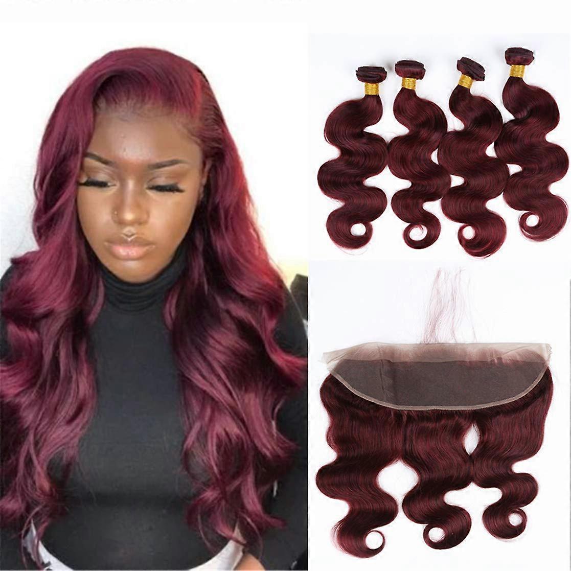 99J Burgundy Body Wave Virgin Human Hair Bundles with 13x4 Lace Frontal, Natural and Low Shedding