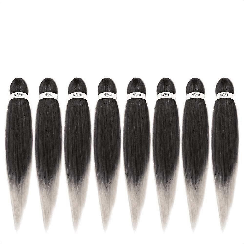 8 Packs Prestretched Braiding Hair Extensions 20' Yaki Texture Synthetic Crochet with Beads T1B/Silver