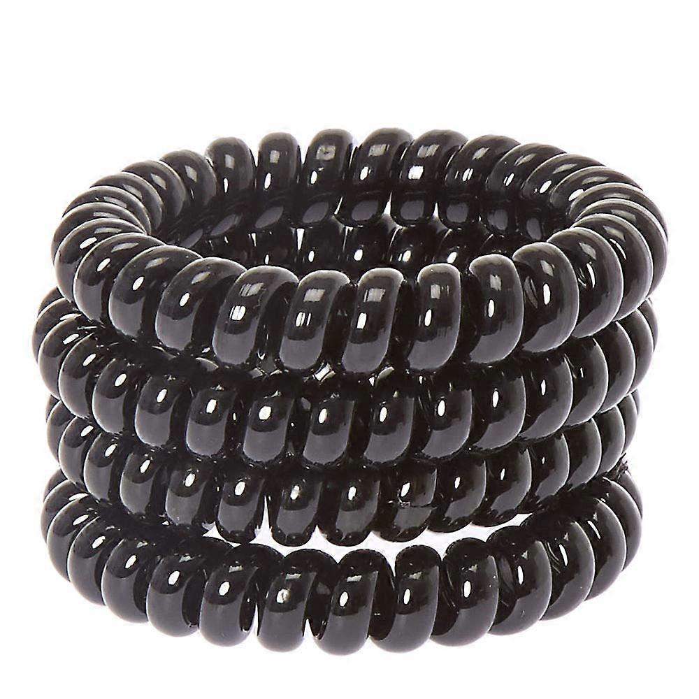 Black Coil Hair Ties 4 Pack for Women, Gentle Hold Spiral Design with Secure Coil Grip