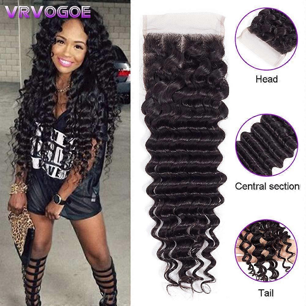 Brazilian Deep Wave Lace Closure 4x4 Middle Part Virgin Human Hair Unprocessed Natural Color 12 Inch