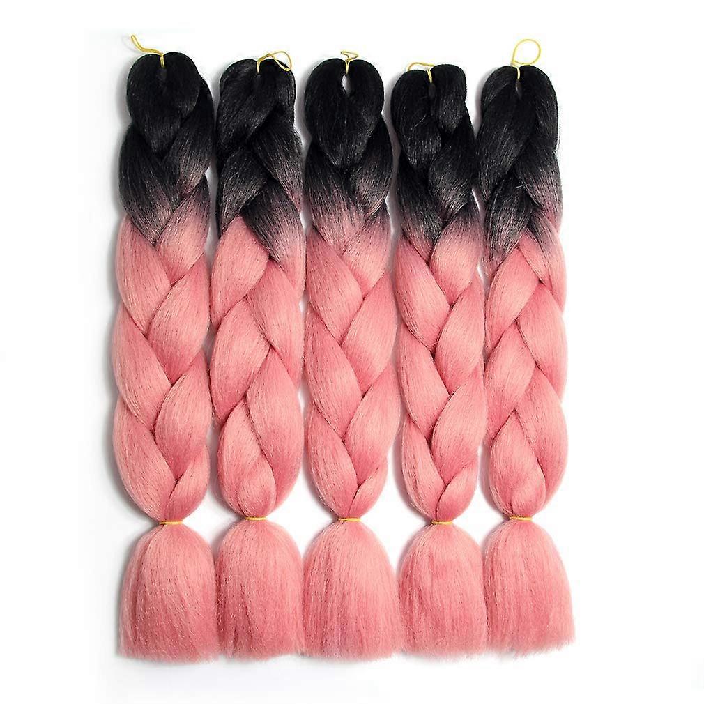Ombre Braiding Hair 24 Inch Jumbo Synthetic Hair Extensions Heat Resistant Black Smoke Pink Pack of 5