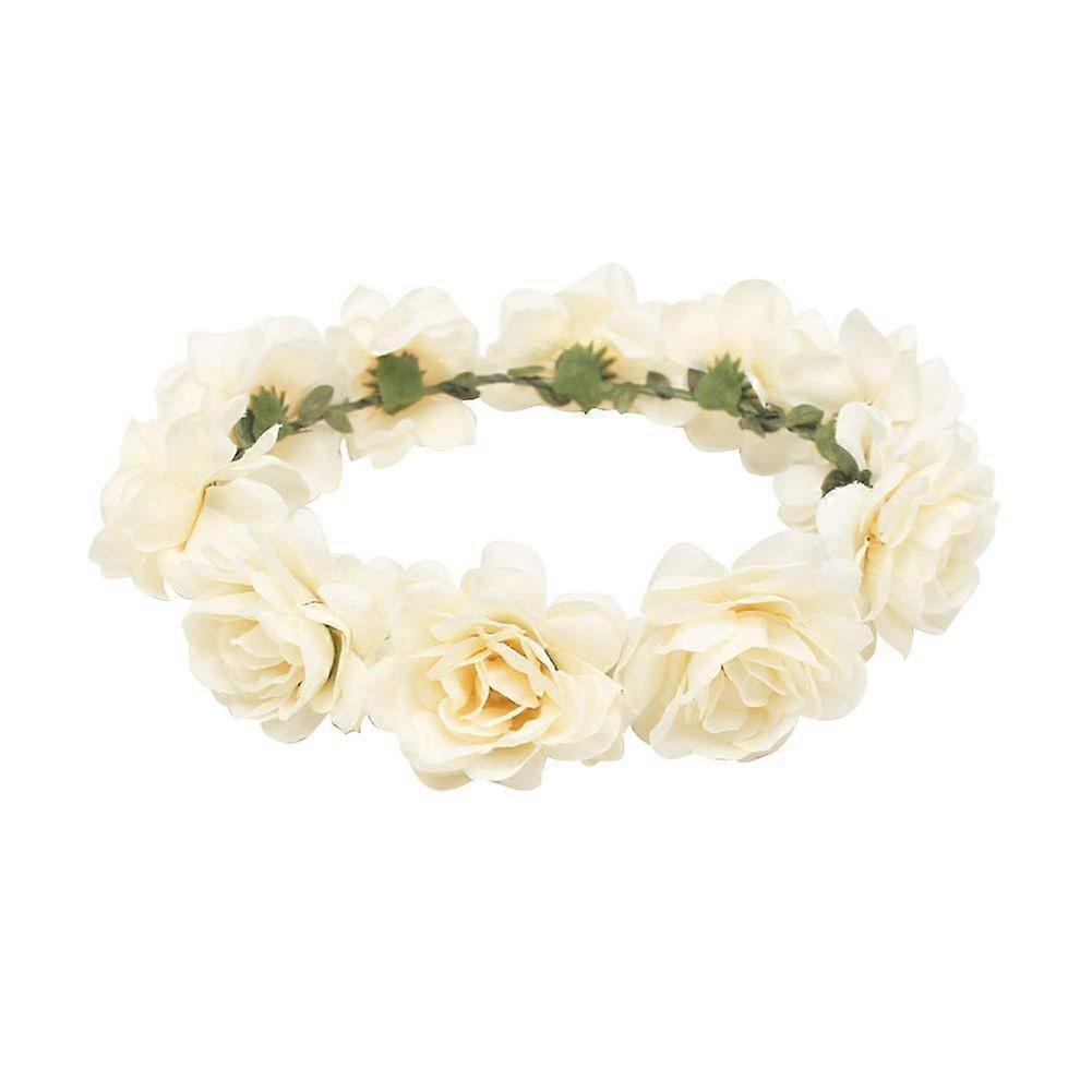 Bohemian Flower Crown with Realistic Floral Design Wedding Headband for Women Beige