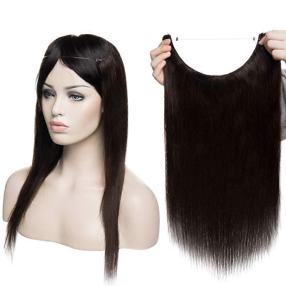 Dark Brown Invisible Wire Human Hair Extensions 20 Inch Straight Clip Comfort