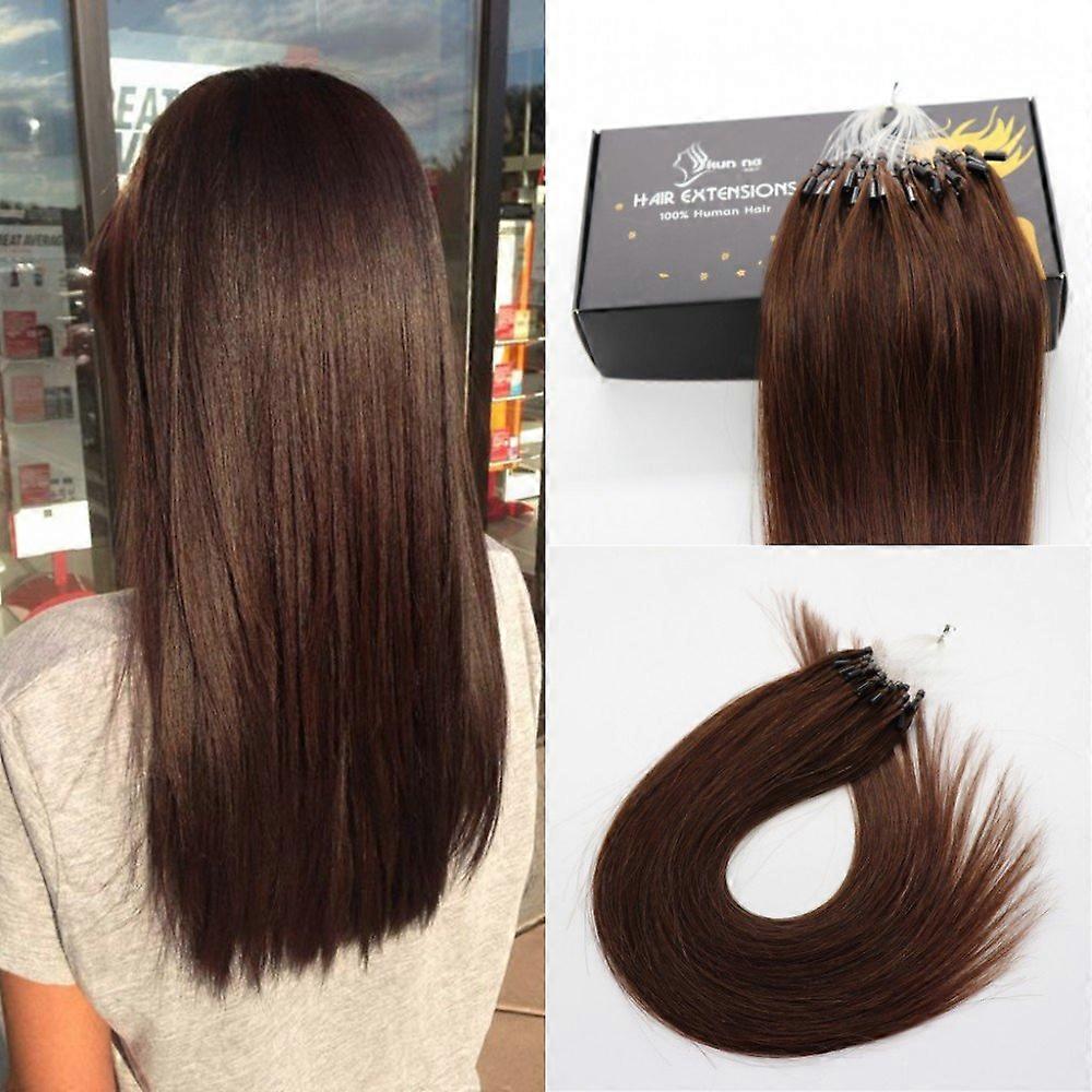 20 Inch Micro Ring Human Hair Extensions Remy Natural Medium Brown Silky Straight 50 Strands