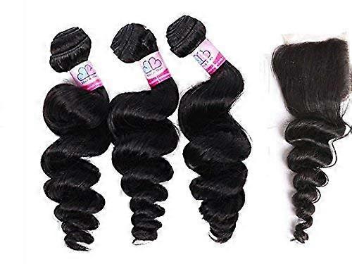 Brazilian Virgin Loose Wave Hair Bundles 8 10 12 Inch with 8 Inch Lace Closure Natural Color