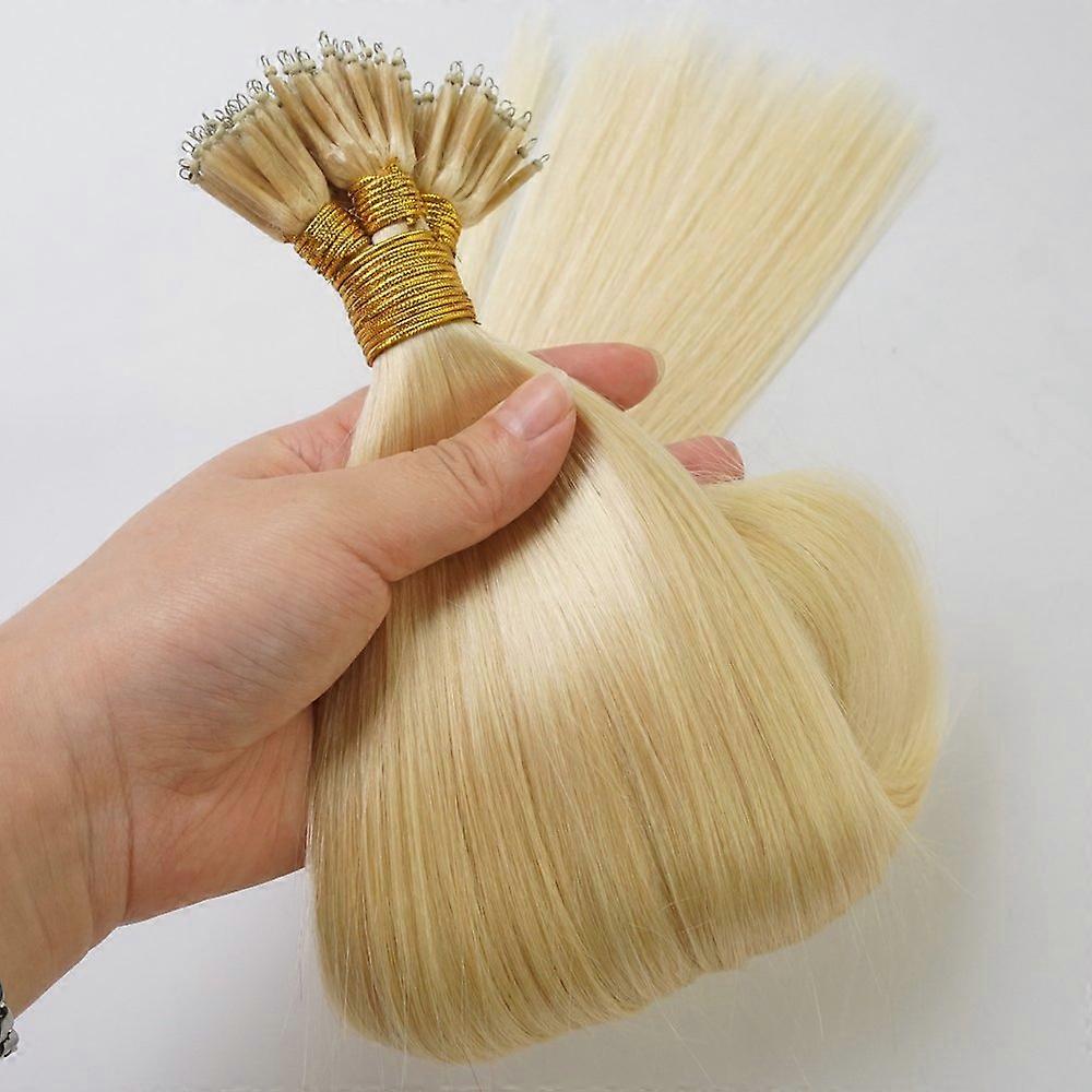 18 Inch #60 White Blonde Nano Ring Remy Human Hair Extensions 100 Strands Seamless Natural Blend
