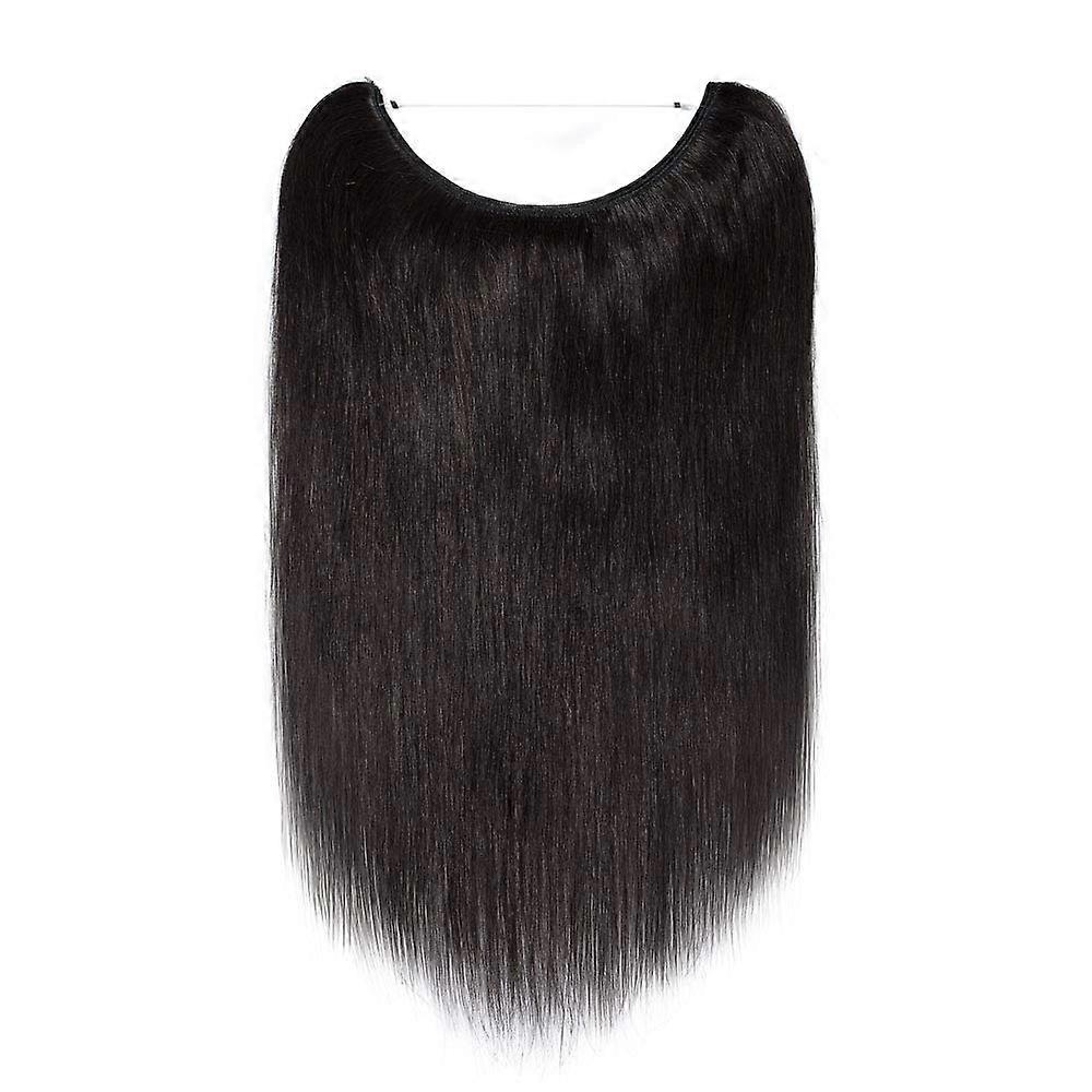 Halo Hair Extensions Human Hair Invisible Wire Design 18 Inch Off Black Adjustable Volume Boost