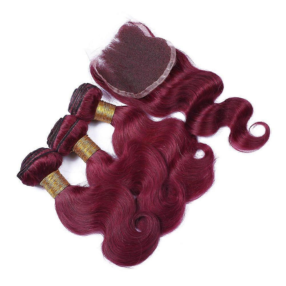 99J Brazilian Body Wave Hair Extensions 18 20 22 Inch with 16 Inch Closure, Human Hair Weave Bundles