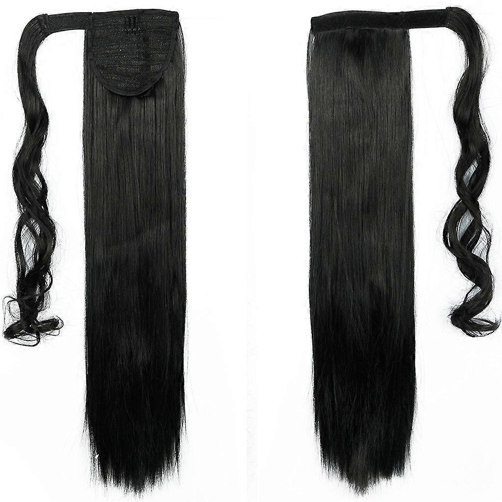 24 Inch Straight Dark Black Ponytail Hair Extensions, Synthetic Wrap Around Hairpiece for Women