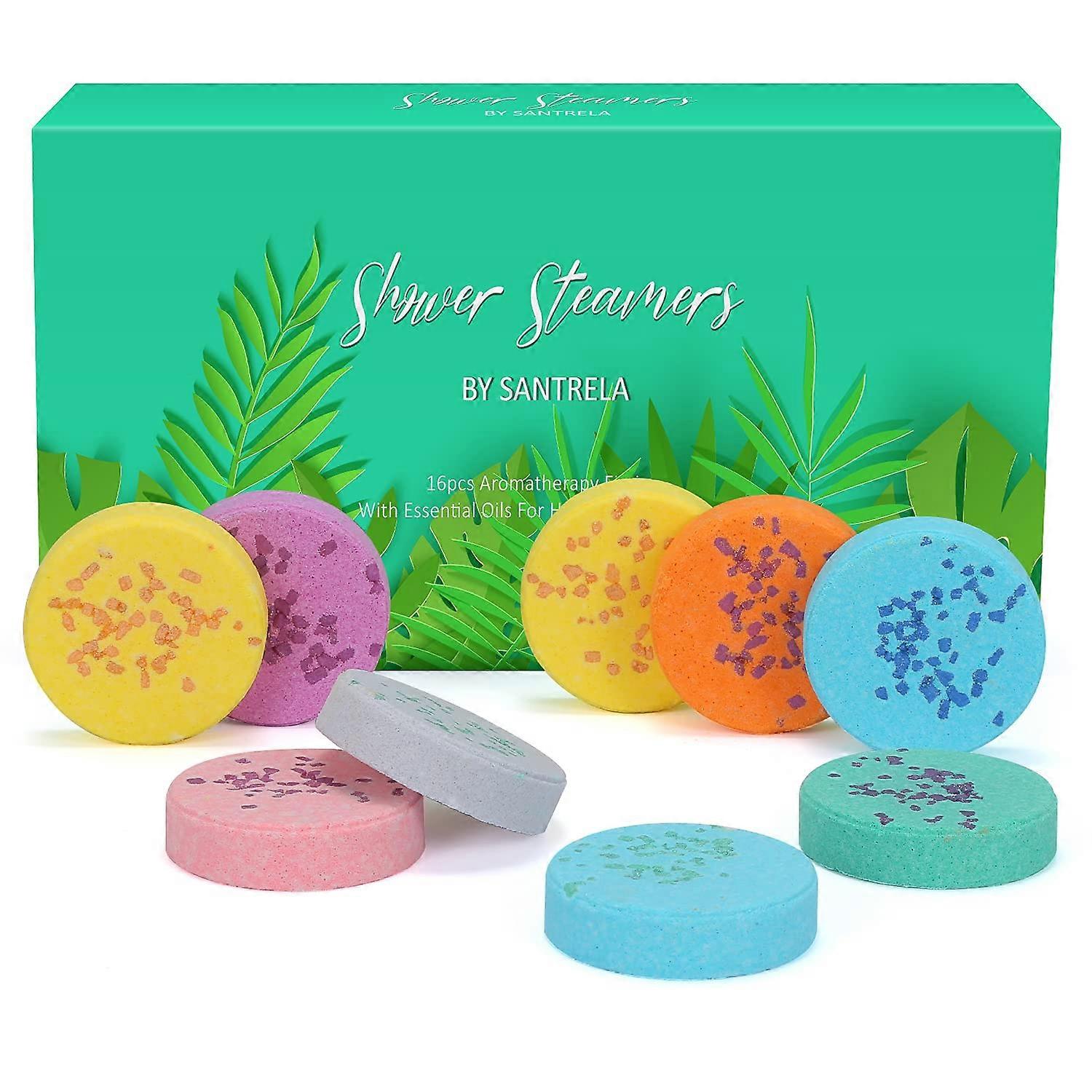 16 Piece Shower Steamer Set with Eight Fragrance Profiles Overview A set of 16 shower steamers, two tablets for each of eight distinct fragrances. Tablets dissolve gradually when moistened by shower water to release scent and create a spa like shower atmosphere. Made with organic ingredients and suitable for vegans. Key features 16 tablets, eight scents: Eucalyptus Clear Mood; Rose Sweet Dreams; Sweet Orange Remove Tiredness; Coconut Soothe Muscles; Mint Refresh Brain; Lemon Unwind Mind; Strawberry Enjoy Life; Bergamot Enjoy Every Day. Long lasting fragrance: each tablet is formulated to release scent over the course of a shower when activated by running water. Easy to use: no special equipment required. Place a tablet on the shower floor or a shelf where it will be moistened but not submerged. Travel friendly and gift ready: compact tablets are convenient for travel and come in a variety of colors and scents suitable for gifting. How to use Remove the plastic packaging before use. Place a tablet on the shower floor or on a shower shelf out of the direct stream. Allow running water to moisten the tablet to activate its scent. Do not fully immerse in water. Use tablets soon after opening for fragrance performance. Practical applications Morning routine: use a fresh scented tablet during a morning shower to add an aromatic boost to the start of the day. Post workout: place a tablet in the shower to refresh the shower environment after exercise. At home spa: combine a warm shower with a chosen fragrance to enhance a spa style routine without special equipment. Who it is for A thoughtful gift option for women, mothers, wives, girlfriends, sisters, and others. Suitable for occasions such as birthdays, anniversaries, Valentines Day, Mothers Day, Thanksgiving, Christmas, weddings, and similar celebrations. Materials and performance notes Tablets are made from organic ingredients and formulated to dissolve gradually when moistened. For results follow the usage instructions above.