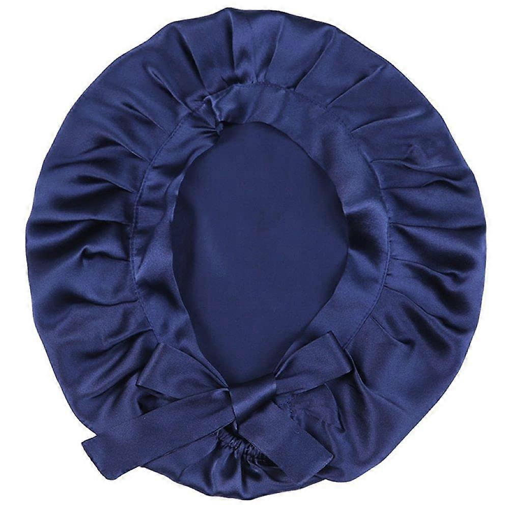 Silk Sleep Cap Pure Mulberry Bonnet for Women FrictionReducing Hair Wrap Night Use Navy