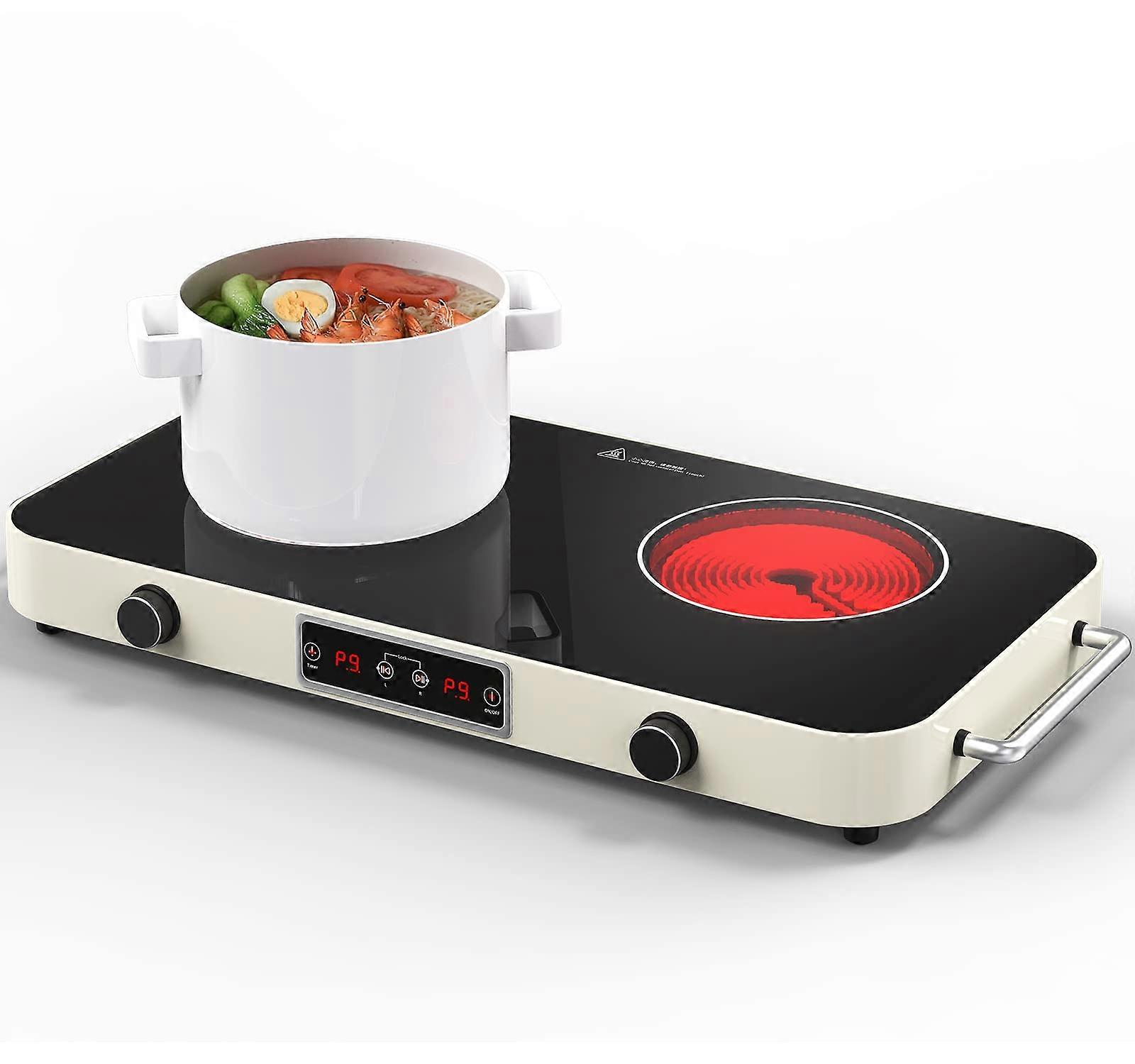 A compact, reliable electric cooktop designed to add a fullfeatured cooking surface wherever you need it. This portable electric stove runs on standard 110V power and delivers up to 2200W across two burners, giving you the flexibility to cook more than one dish at once with precise control and builtin safety features. Key benefits Extra cooking capacity without installing a permanent range: ideal as a primary surface in small spaces or a temporary solution during renovations. Fast, adjustable heating: 2200W power and 9 heating levels let you move from simmer to boil with steady, userselected settings. Safe and easy to use: knob controls for intuitive operation, a child safety lock to prevent accidental changes, and a timer for automatic shutoff. Truly portable: two burners and two handles make carrying and positioning the unit simple and secure. Main features Power and compatibility: 110V input, 2200W total power for quick heating on standard household outlets. Two burners: Cook two pots or pans at once to save time and simplify meal prep. 9 heating levels: Precise temperature selection for boiling, simmering, frying, and keeping food warm. Knob control: Durable, tactile knobs for straightforward, responsive control of each burner. Child safety lock: Prevents unintended operation or changes to settings. Timer: Builtin timer allows automatic shutoff after a set cooking interval. Handles: Two integrated handles for safer lifting and transport; supports easy repositioning for storage or use. What it does Replaces or supplements a full kitchen range when space, budget, or timing require a flexible alternative. Provides consistent, controllable heat for everyday cooking tasks like boiling, frying, simmering, and warming. Offers a safe, familyfriendly option with a child lock and timer to reduce the risk of accidents. Practical use cases Small apartments and dorm rooms: Add reliable cooking capacity where a full stove isn't available. Two burners let you prep a main dish and side simultaneously. Temporary or backup range during kitchen renovations: Keep meal routines on track without moving out or eating out. Travel and onsite cooking with 110V power access: Use in vacation rentals, offices with kitchenettes, or any location with a standard 110V outlet to prepare fresh meals on the go. Simple to set up and operate Plug into any standard 110V outlet, place on a stable, heatresistant surface, set the desired burner level with the knob, and use the timer and child lock as needed. The two handles make it easy to move and store without awkward lifting. This electric cooktop combines power, control, and safety in a portable package—an efficient solution for anyone who needs an extra or temporary cooking surface without sacrificing performance.