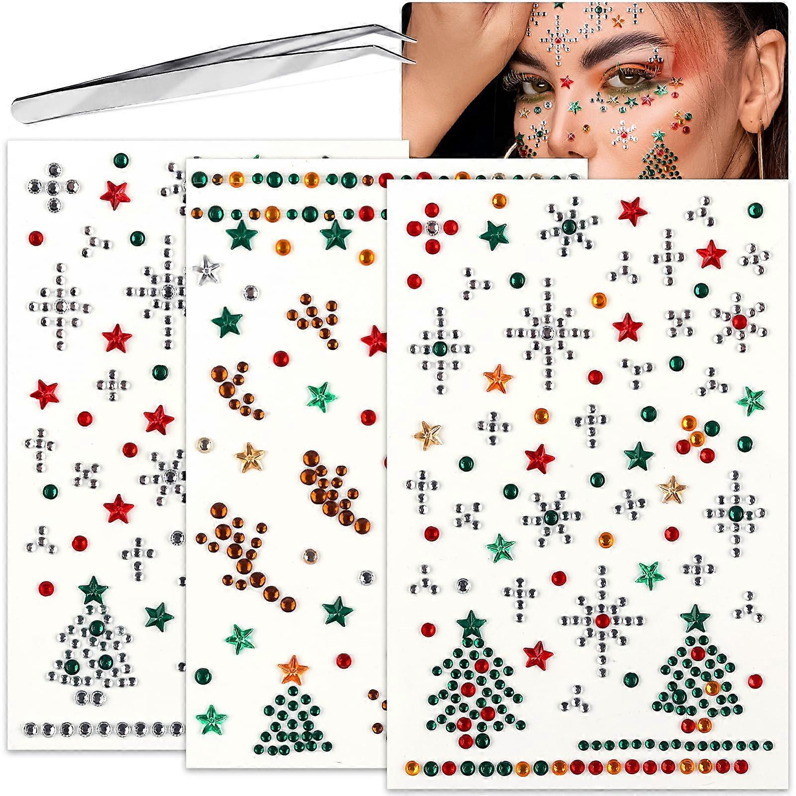 Christmas Face Gems Stickers SelfAdhesive Rhinestone Face Jewels for Festival Makeup Tree Snowflake Elk