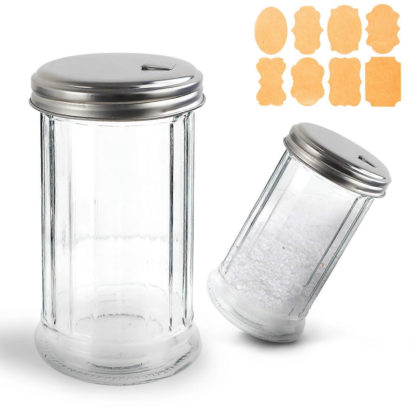 Glass Sugar Dispenser with Stainless Steel Lid, 350ml Automatic Sugar Pourer for Coffee and Tea