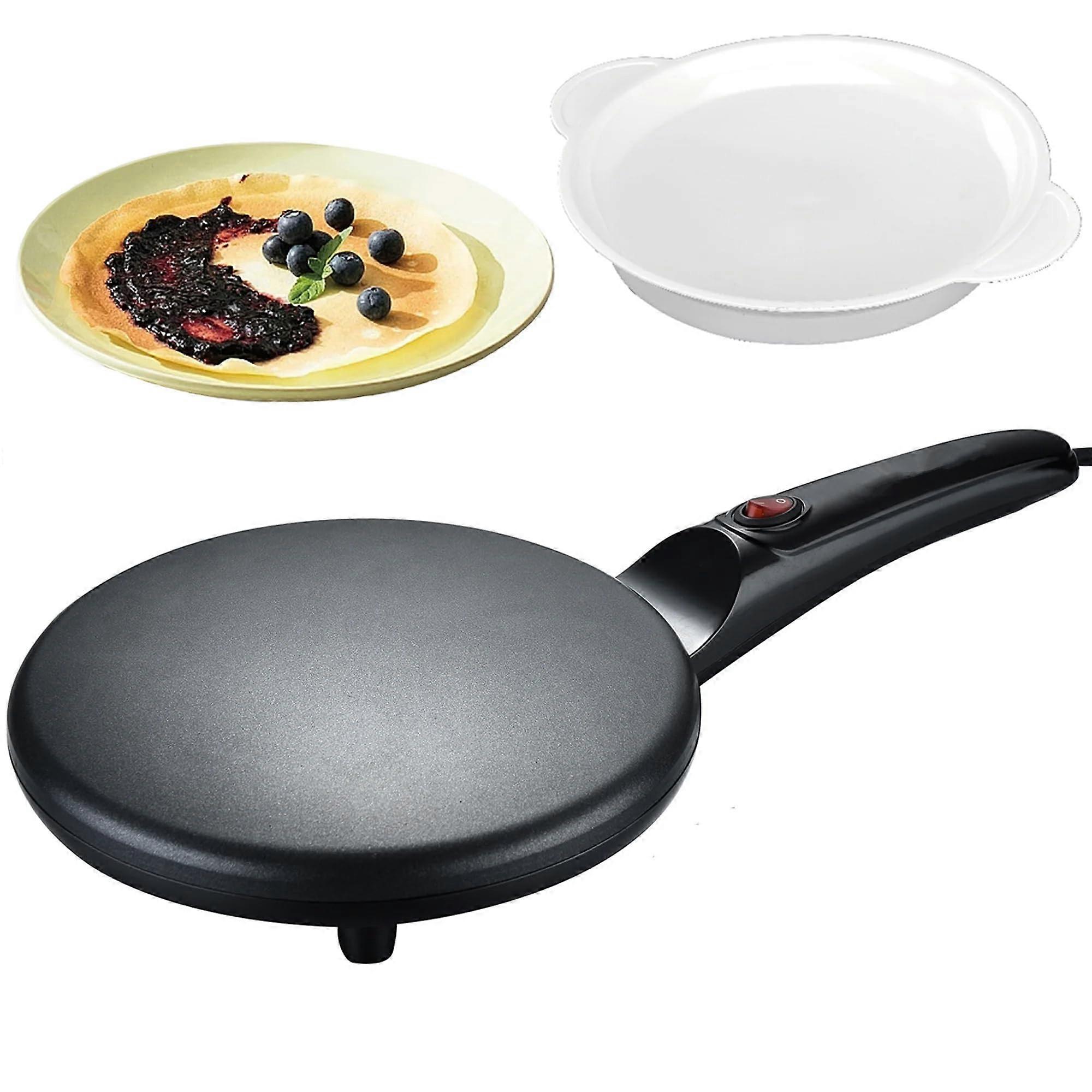 8 Inch Electric Crepe Maker with Non Stick Surface, Auto Temperature Control, Long Handle, Batter Bowl