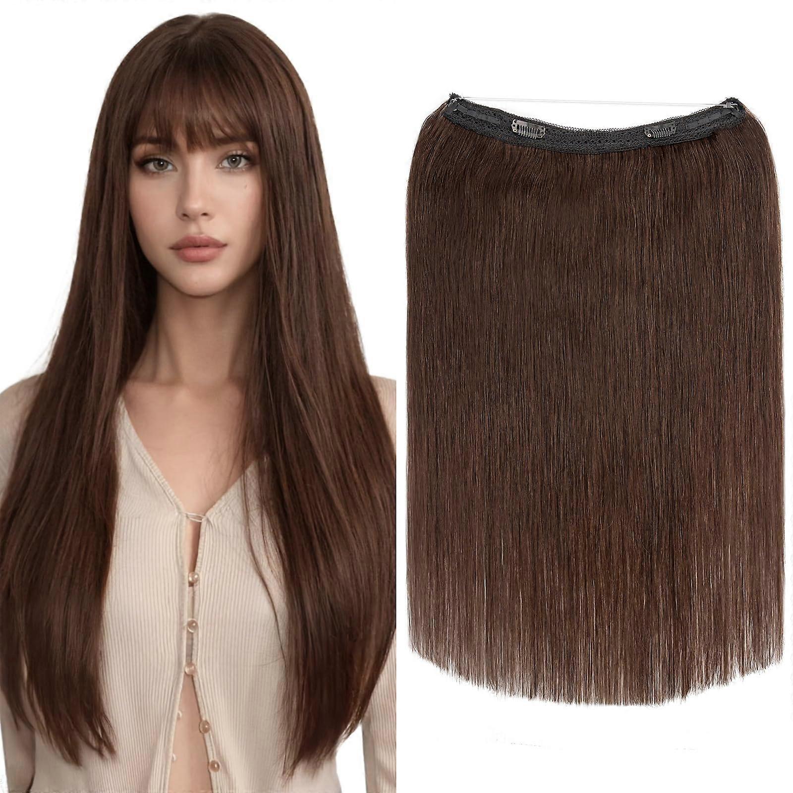 Human Hair Extensions Dark Brown 20 Inch Remy Clip In Wire for Instant Natural Blend