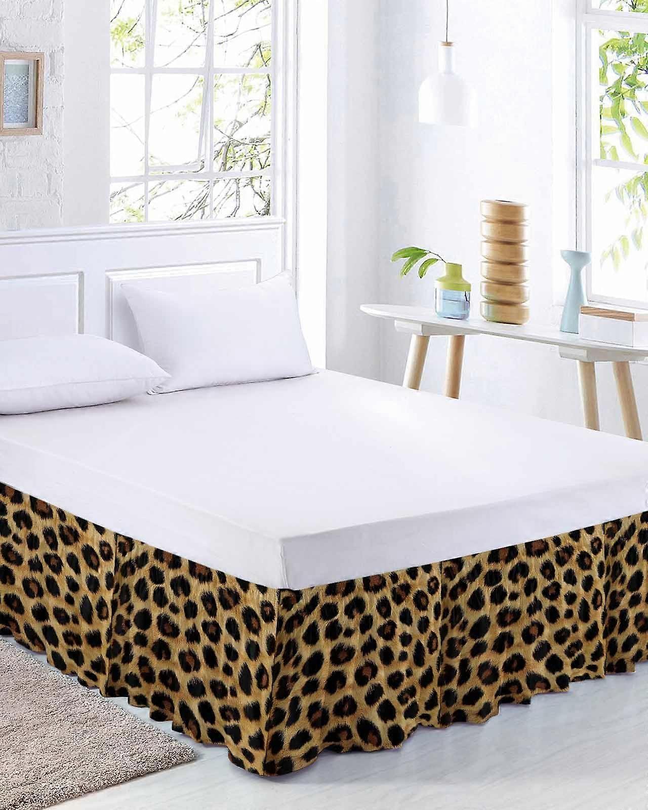California King Bed Skirt 18 Inch Drop Leopard Print Elastic Wraparound Pleated Dust Ruffle