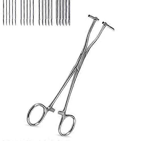 Body Piercing Forceps with Adjustable Lock and Needles, Septum Clamp 316L Stainless Steel Kit