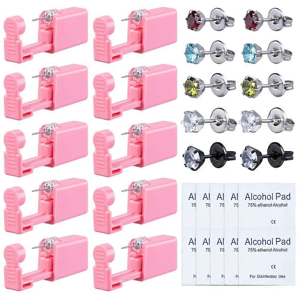 Ear Piercing Kit 10 Pcs Disposable Gun Set with Zircon Crown Studs for Home or Salon Use