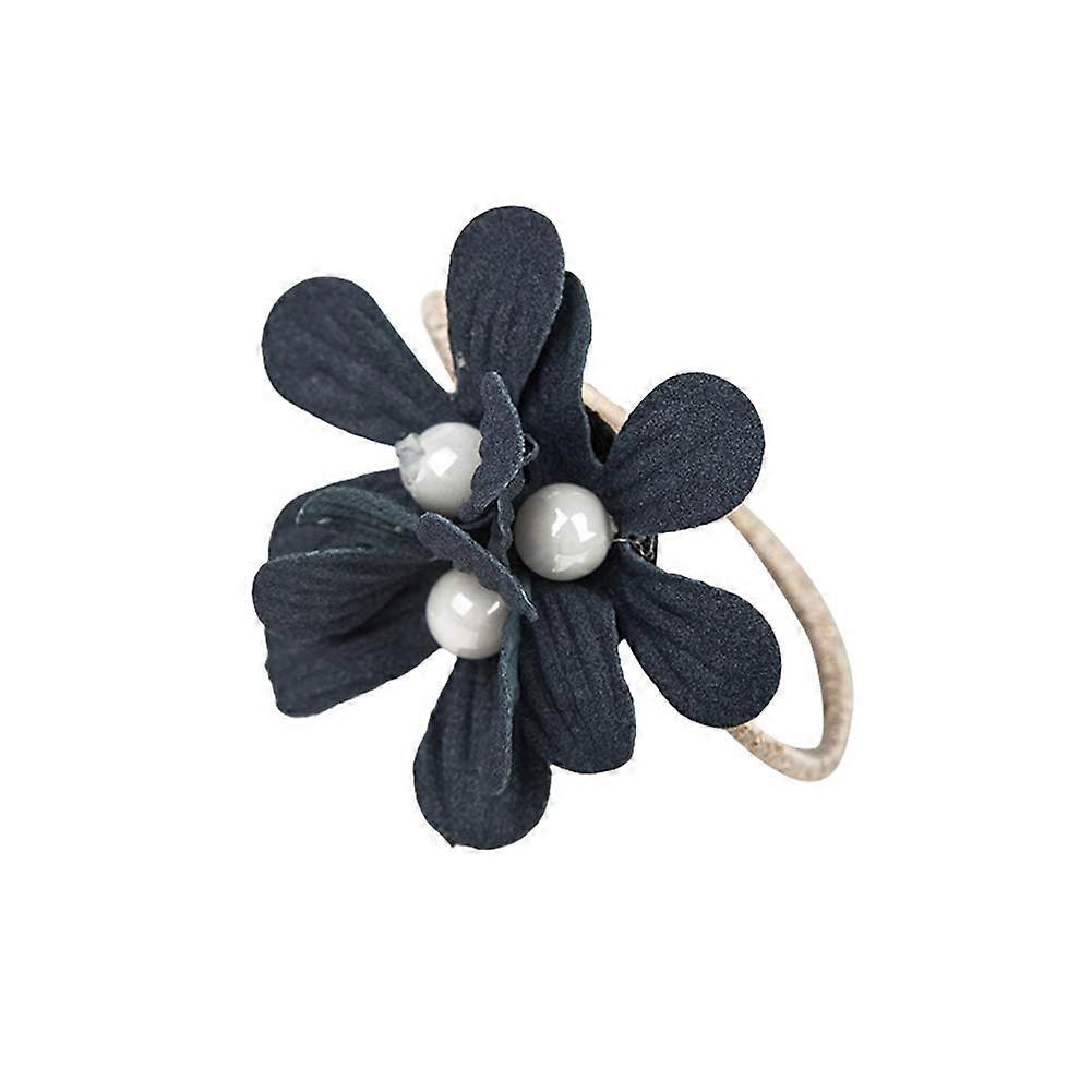 Hair Tie with Camellia Flower and Faux Pearl, Women's Elastic Ponytail Holder, Blue Cloth Rope