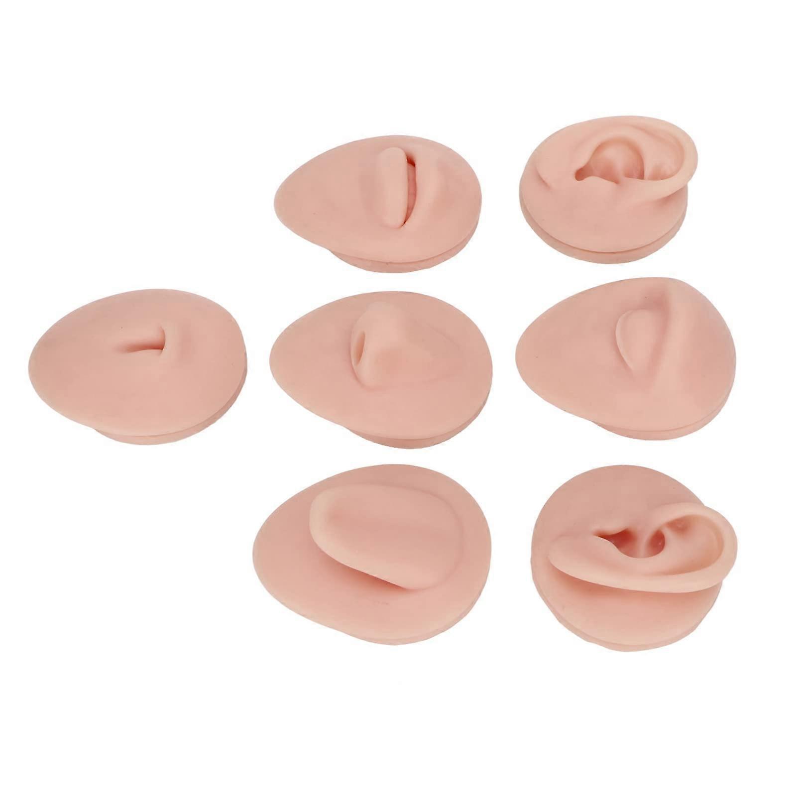 Piercing Practice Model with Realistic 3D Features, Soft Silicone Ear Nose Mouth Set with Display Rack, Medium Skin Color