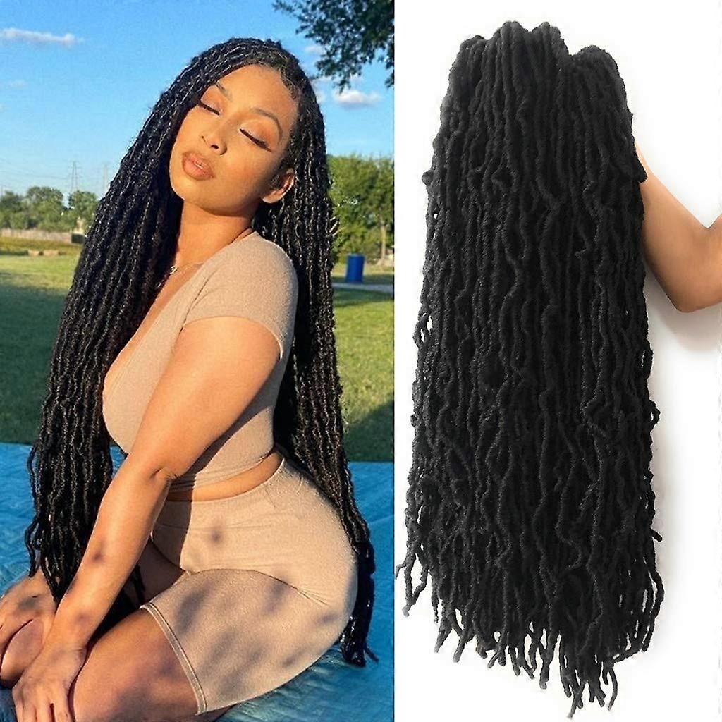 24 Inch Soft Locs Crochet Hair Pre Loop Goddess Locs Braids Natural Wavy Faux Locs Extensions 6 Pack 1B