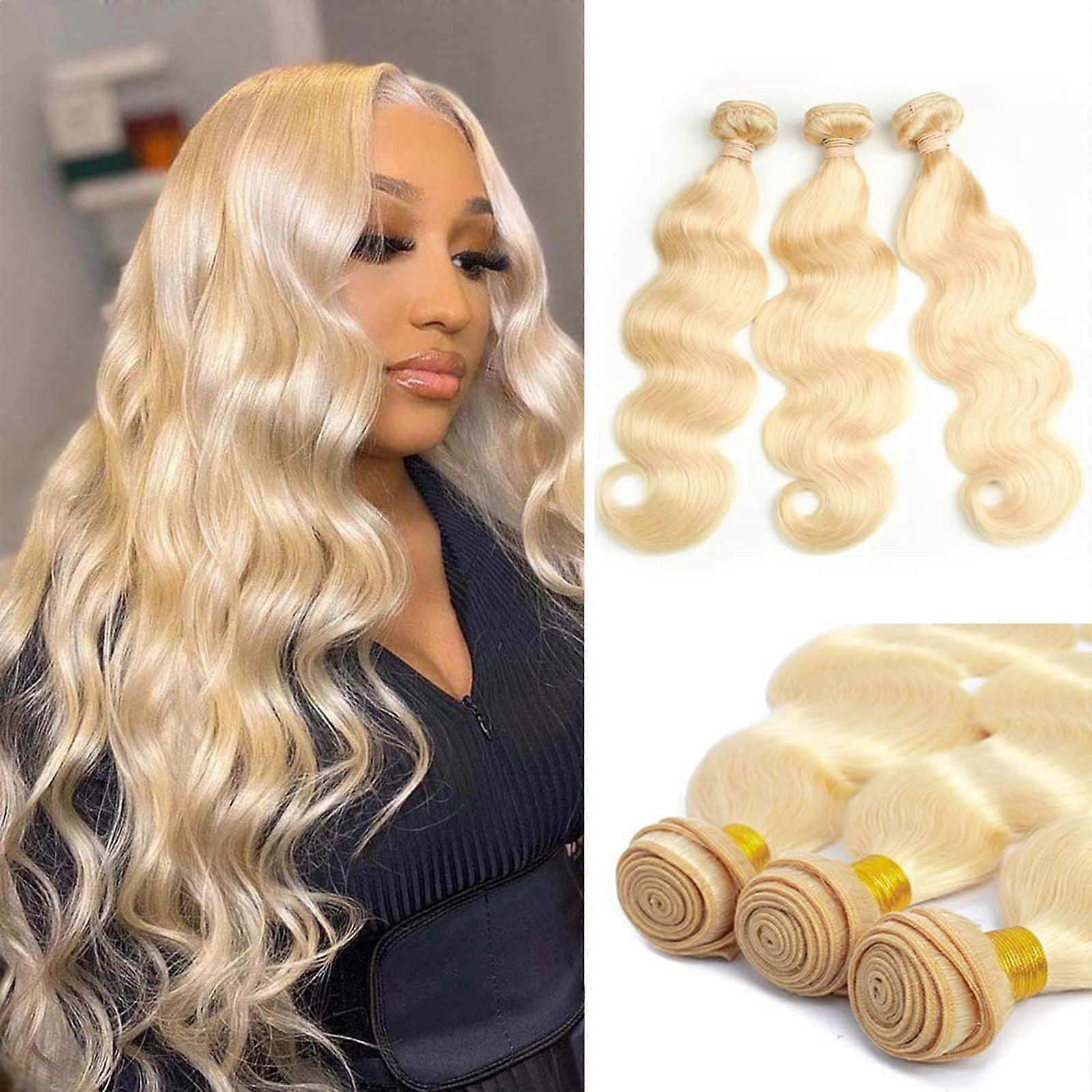 613 Blonde Brazilian Body Wave Human Hair Bundles 100% Virgin Unprocessed Extensions 12 14 16