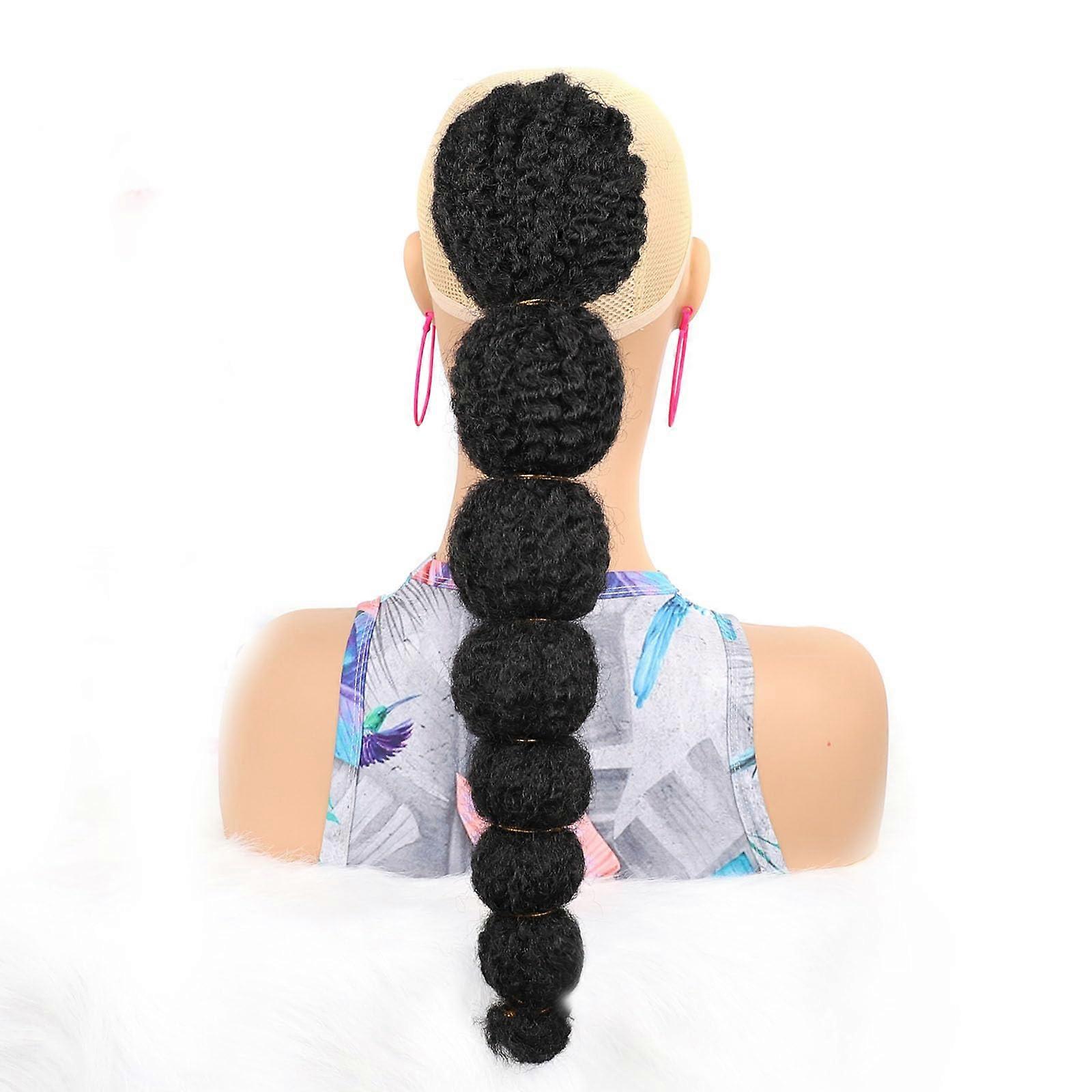 Drawstring Ponytail Hair Extension Black 18in Synthetic Afro Puff with Clips Heat Styling