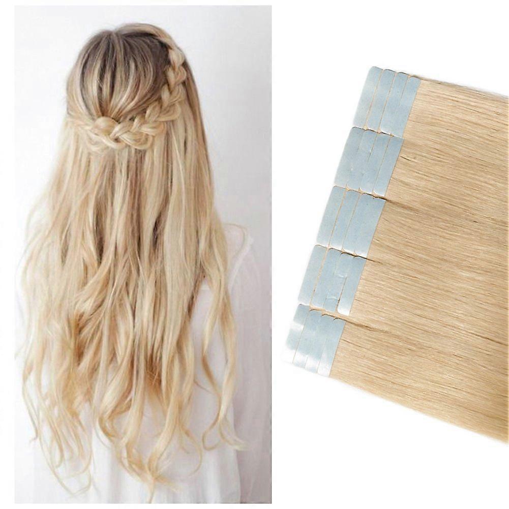 Tape in Remy Human Hair Extensions Blonde 14 Inch Seamless Skin Weft Reusable Natural Straight 60g