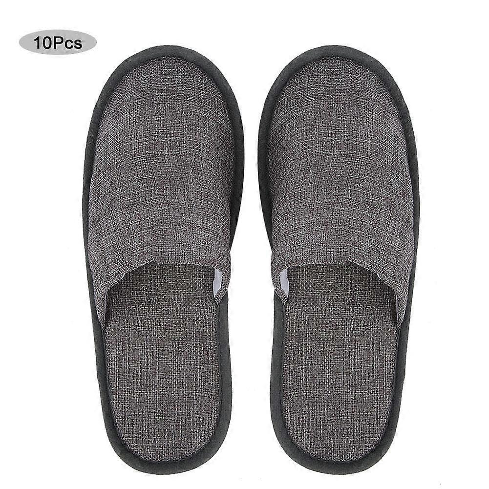 10 Pairs Grey Disposable Hotel Slippers Soft Coral Fleece Comfort for Travel and Guests
