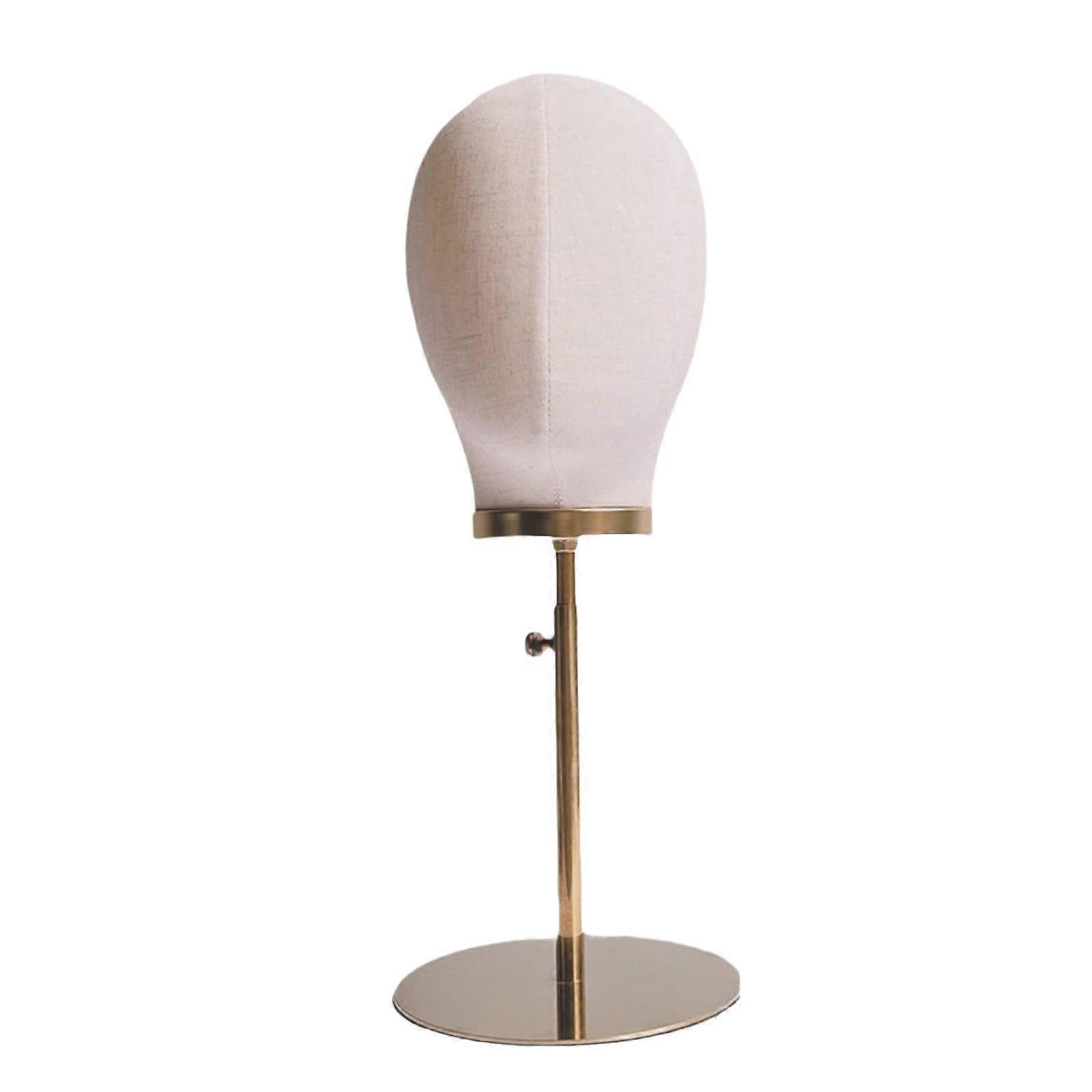 Mannequin Head Stand Adjustable Height Wig Display with Stable Base for Salon and Home, Beige Linen