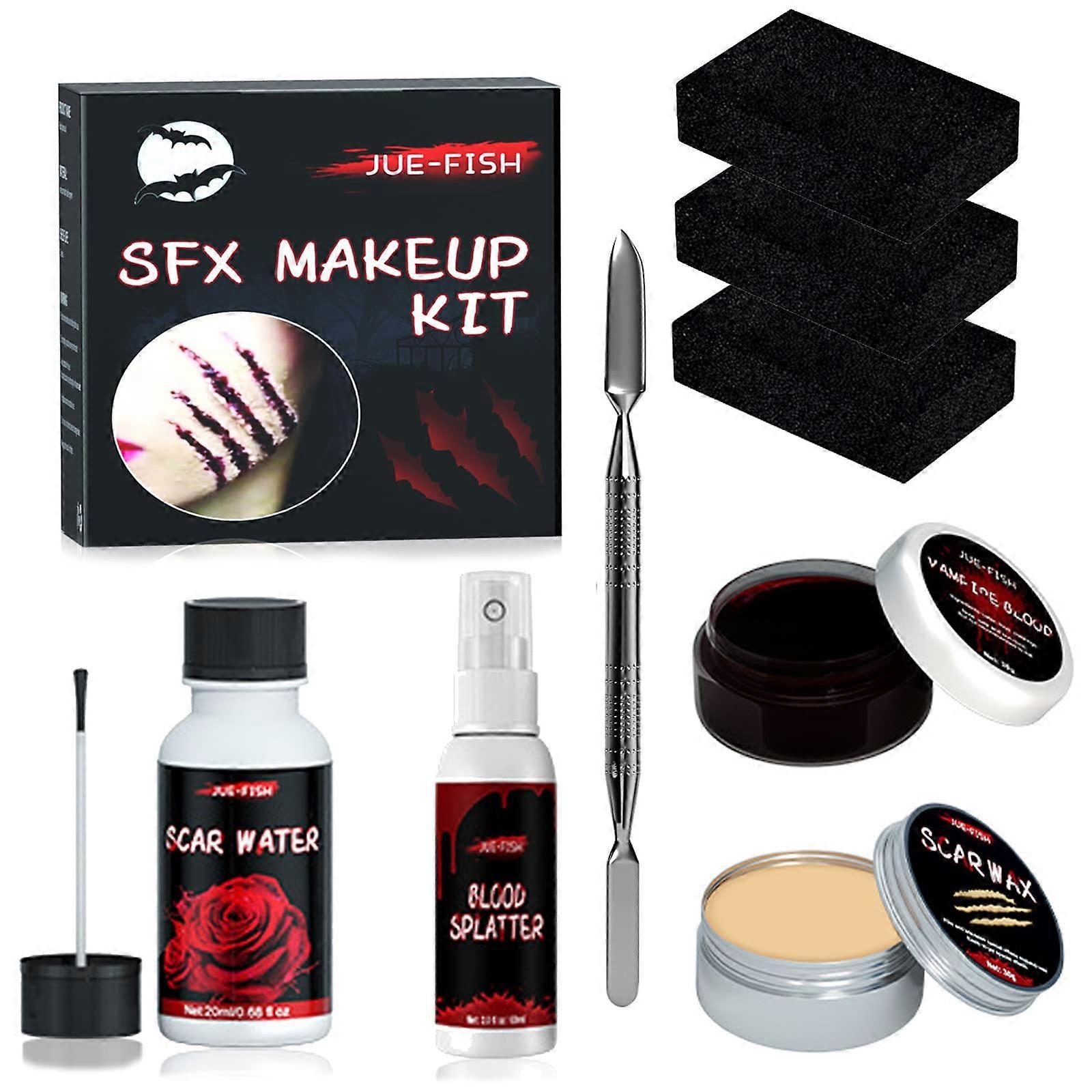 Halloween Makeup Kit with Scar Wax, Fake Blood and Sponges for Realistic Special Effects