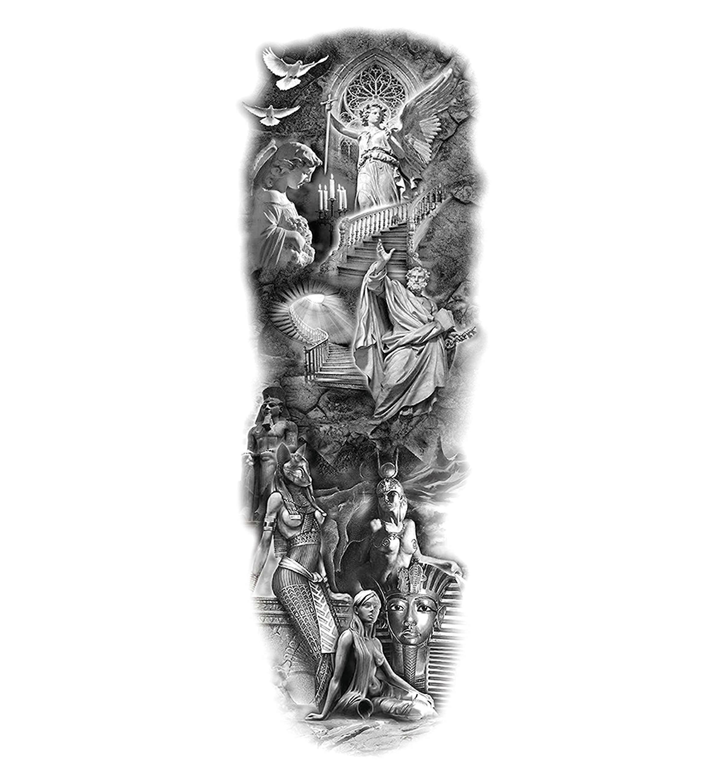 6 Sheets Waterproof Full Arm Temporary Tattoo Sleeve, Large Buddha Design, 17x48cm Black Body Art for Arms Legs Shoulders