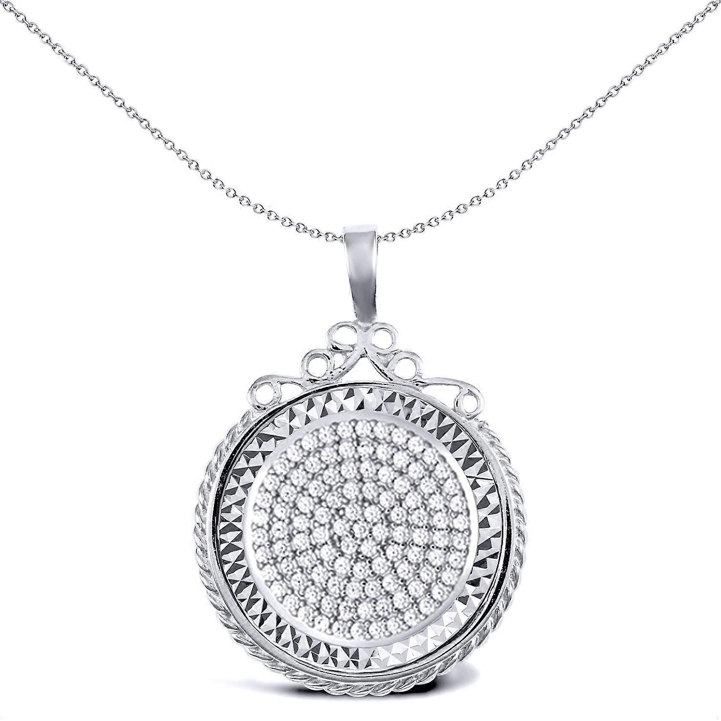 Jewelco London Unisex Rhodium Plated Sterling Silver Rope Edge Scroll Top Full Sovereign Coin Mount Pendant CZ Disc