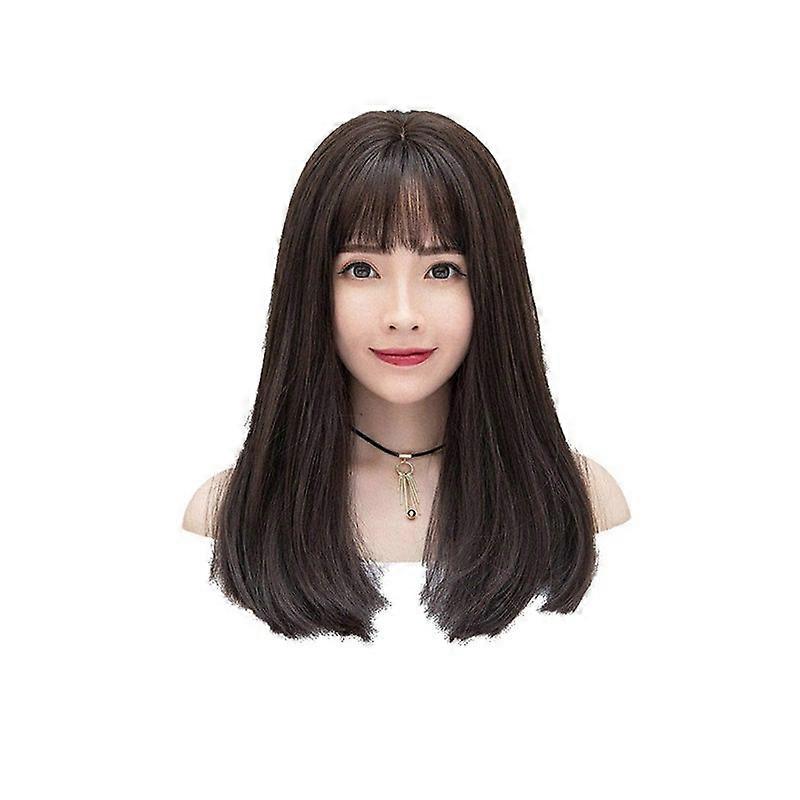Fashion Wig Female Long Hair Air Bangs Fluffy Natural Short Full Headgear Brown Wigs Facial Hair