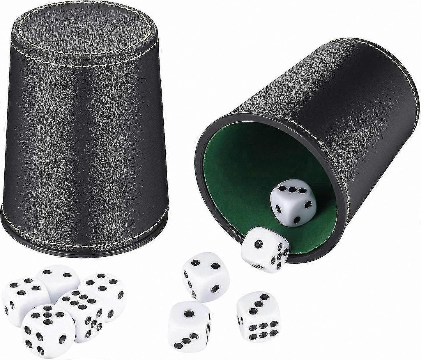 Leather Dice Cup Set with 10 Dot Dices for Games, Party, Gifts (2pcs)