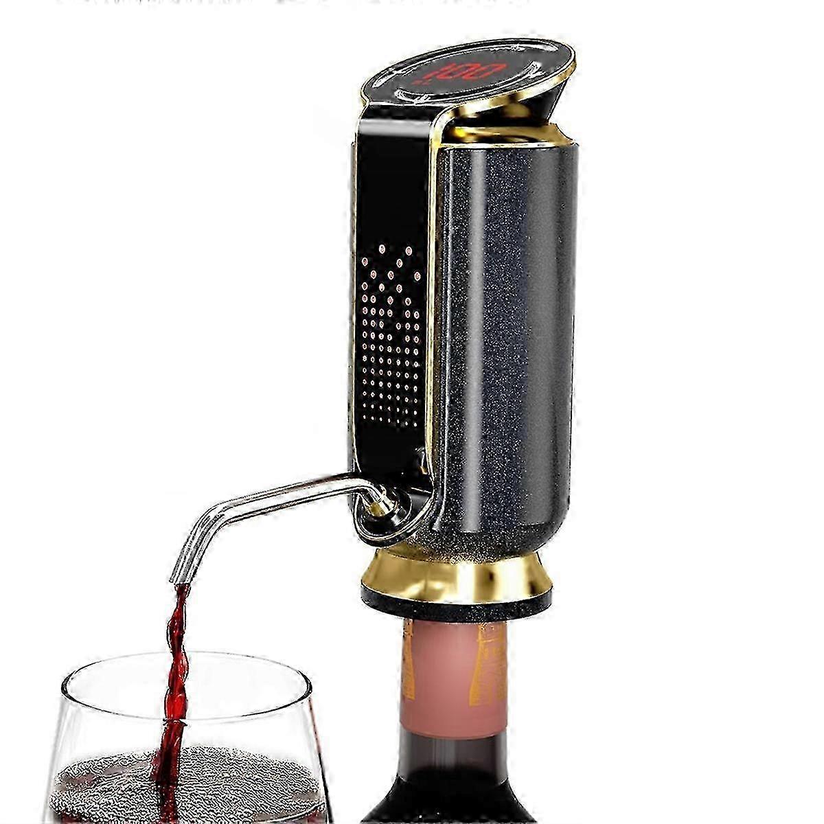 A 3-in-1 Electric Wine Aerator, Decanter, Dispenser, & Vacuum Pump with an LED Touch Screen and a Temperature Monitor.