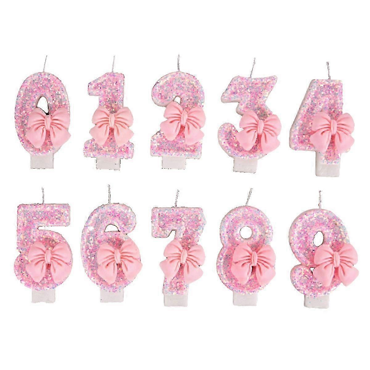 Number Cake Decorating Candles with Cute Pink Bow for Baby Girl Birthday -LL