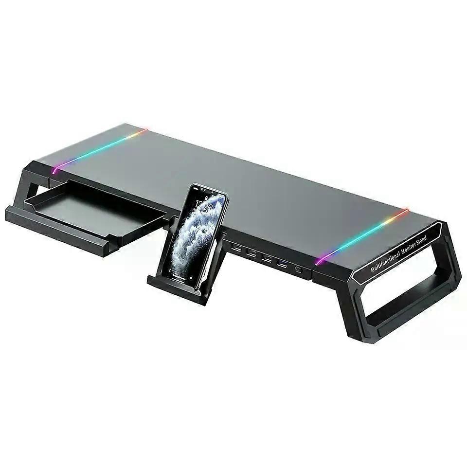4 USB Ports PC Monitor Stand Screen Holder Keyboard Storage Space Bar Aluminum Laptop Monitor Stand With USB30 Fast Charging