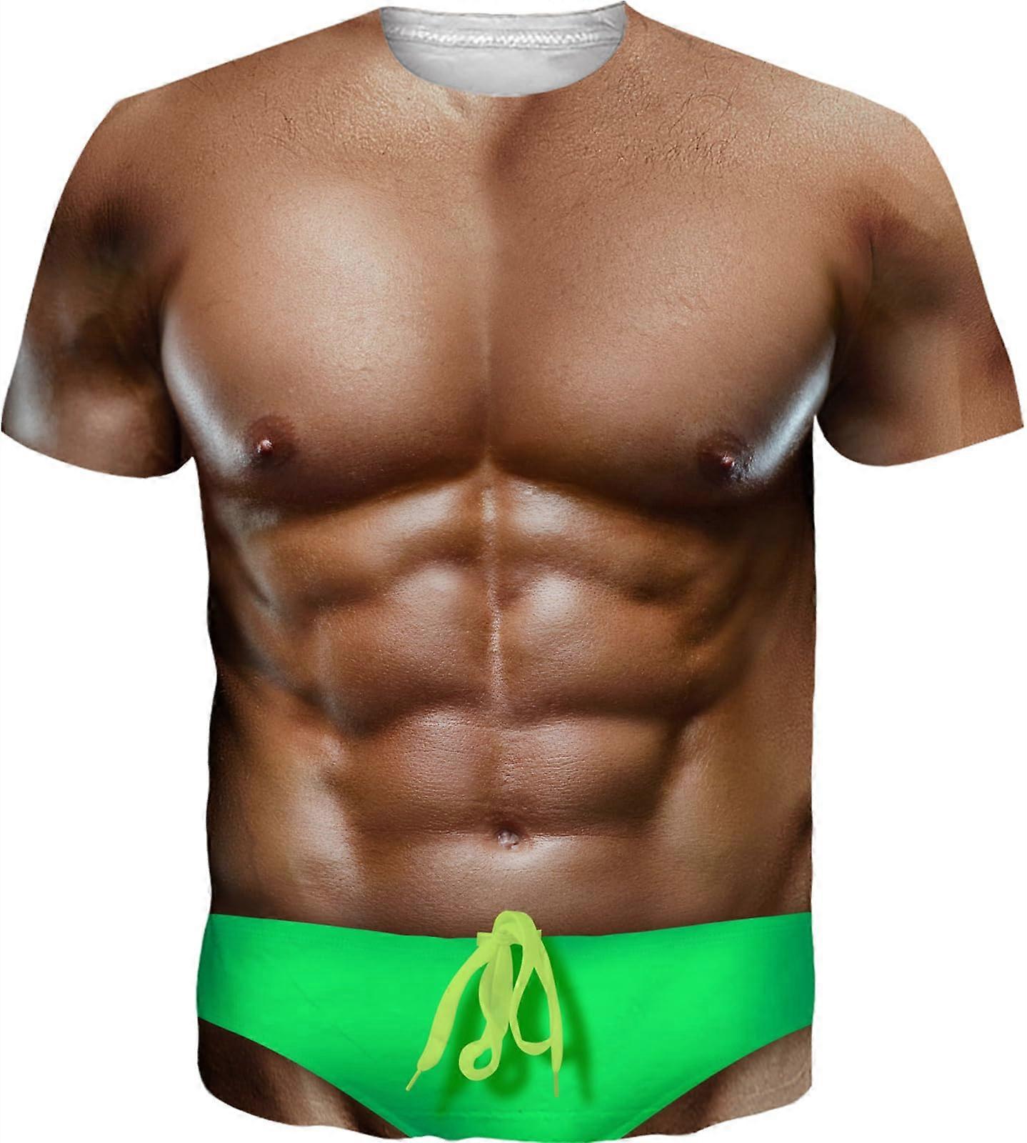 Men's Fun Visual Muscle Casual 3D Creative Printed Round Neck Party Funny T-shirt