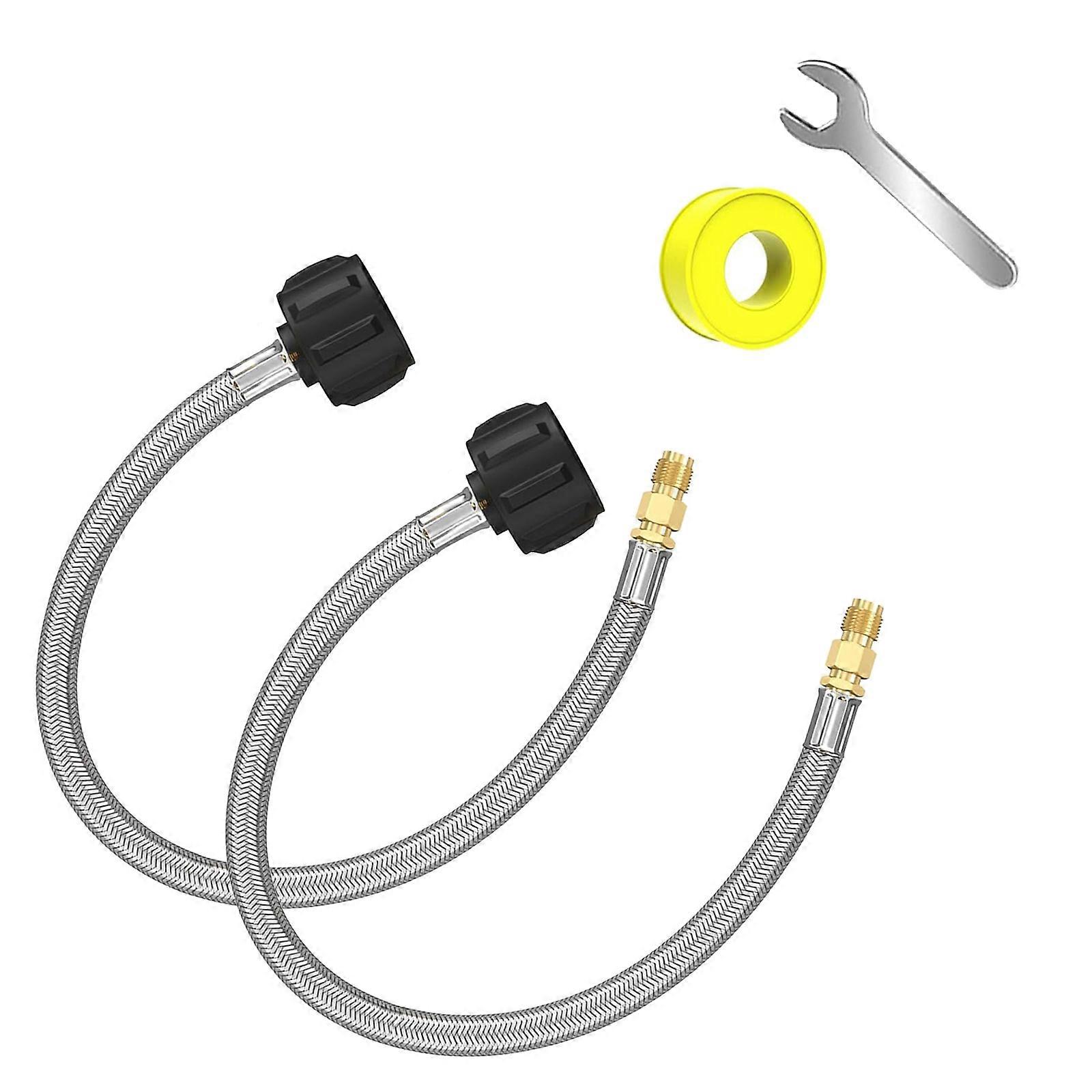 Features: This upgraded stainless steel propanes hose set includes two 15 inch hoses with QCC1 and 1/4" male thread adapter (not male inverted flared), ensuring secure connection to regulators and propanes tanks for great gas flows in outdoor settings. Crafted from durability stainless steel, adopting multi layer hose construction for hose strength, flame-retardant and flexibility, flexible, sturdy, weather/wear/leak resistant. Ideal for campers, and barbecue enthusiasts, this propanes tail pipe hose set caters to users seeking dependable propanes connection for recreational vehicles and portable grills. Perfect for camping adventures, tailgating event, outdoor cooking tasks, and heating applications, it connects propanes tanks to campers, grills, and similar low pressure equipment. Engineered for safety and longevity, the stainless steel construction resists corrosions and wear, offering robust performances during extended outdoor activities like barbecuing and travel. Specifications: Component: Stainless Steel Color: As pictures shown. Total Length: approx. 45.72cm/18.00in Package Includes: 2pcs propanes Hose (gauge not included) note: Please allow 1-3cm error due to manual measurement. please make sure you not mind before you bid. Due to the differences between different monitors, the picture may not reflect the item actual color.