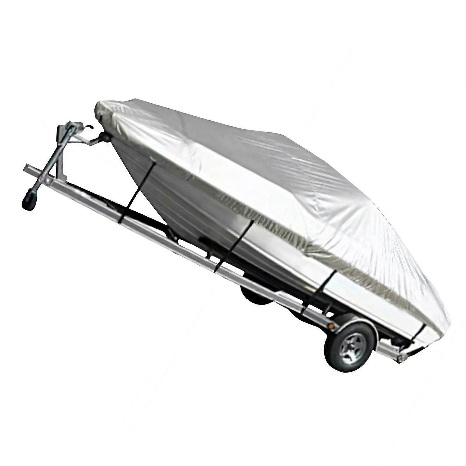 Multifunction Use Boat Cover Waterproof Oxford Fabric Universal for Storage Mooring Trailering V Hull Boats 14 to 16 Feet Silver