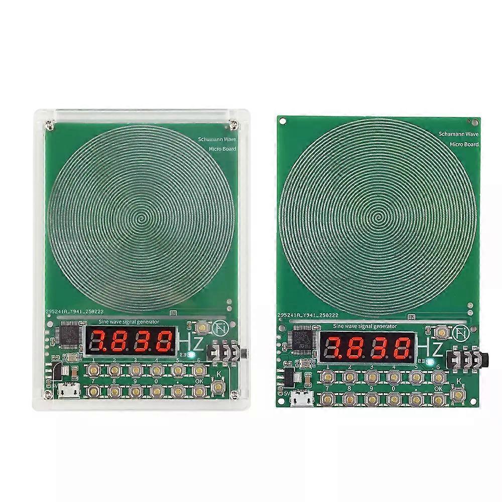DC 5V 001Hz~100000Hz Schumann Waves Resonance Generator Adjustable Sine Wave Resonance Generator 783Hz Ultra Low Frequency DC 5V 0.01Hz~100000Hz Schumann Waves Resonance Generator Adjustable Sine Wave Resonance Generator 7.83Hz Ultra Low Frequency Feature: 1. Wideband adjustment: 0.1Hz~100000Hz adjustable, flexible coverage of various application scenarios to meet different needs. 2. Button operation: Simple and convenient design, novices can easily get started, no pressure to operate. 3. Schumann wave simulation: Simulate the earth's natural Schumann wave 7.83Hz, which helps to relax the body and mind and promote health. 4. Highly integrated design: Digital circuit replaces analog circuit to improve anti-interference ability and system stability. 5. High-quality materials: Highly transparent acrylic shell, beautiful and durable, moderate size, easy to place and carry. Product parameters: Antenna waveform: sine wave Power supply interface: Micro USB interface Power supply voltage: 5V Rated power consumption: